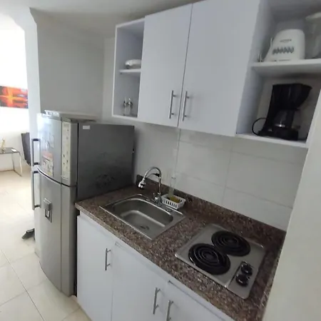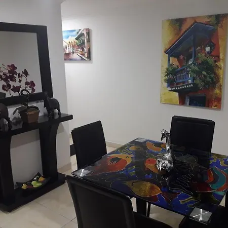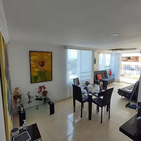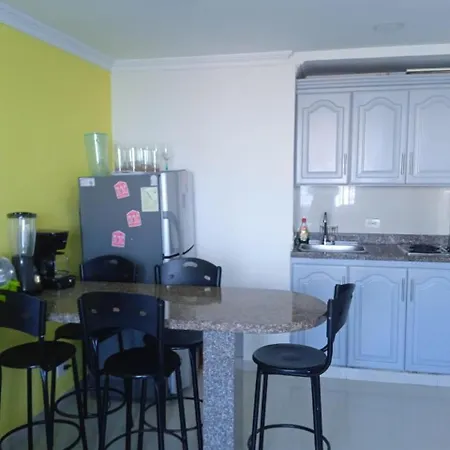 Apartamento Apartamento Playero Cartagena está ubicado en la orilla de la playa y cuenta con una terraza y una piscina exterior. Este apartamento goza de una ubicación frente a la playa, se encuentra a 950 metros del Caribe Jewelry y Museo de la Esmeralda y a 10 minutos en coche de la Ermita del Cabrero.